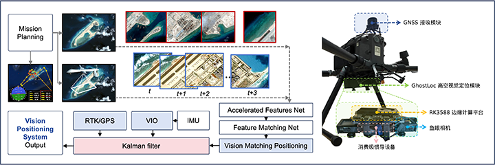 Brief: GhostLoc is a compact, high-altitude visual positioning system that achieves GPS-level precision in denied environments by fusing Visual-Inertial Odometry (VIO) with a Visual Positioning System (VPS). Requiring only lowcost fisheye cameras, IMU, and barometer, it provides smooth 6-DoF pose estimation at over 15 Hz with meter-level accuracy, enabling robust navigation for various aerial platforms without relying on GNSS signals. We integrated all learning-based models in one robust framework running on an onboard computer with RK3588s.